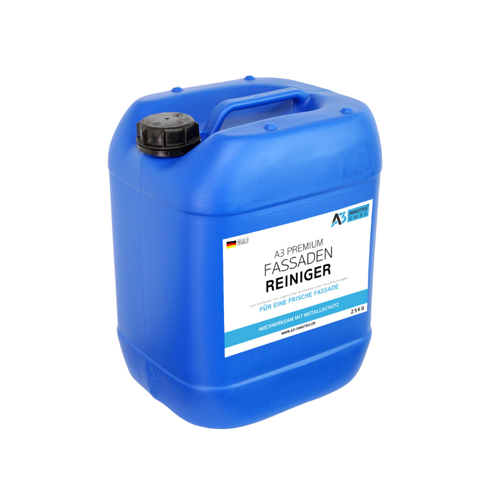 Der Premium Fassadenreiniger von A3 Innoteg ist ein konzentriertes Reinigungsmittel, das durch seine besondere Zusammensetzung überzeugt. Er enthält einen integrierten Metallschutz, der empfindliche Materialien wie Aluminium, Kupfer oder Stahl vor Korrosion schützt. Zusätzlich sorgen spezielle Wirkstoffverstärker für eine besonders schnelle und gründliche Reinigung. Das Konzentrat kann flexibel bis zu einem Verhältnis von 1:5 verdünnt werden und ist damit sowohl für leichte als auch für starke Verschmutzungen geeignet.