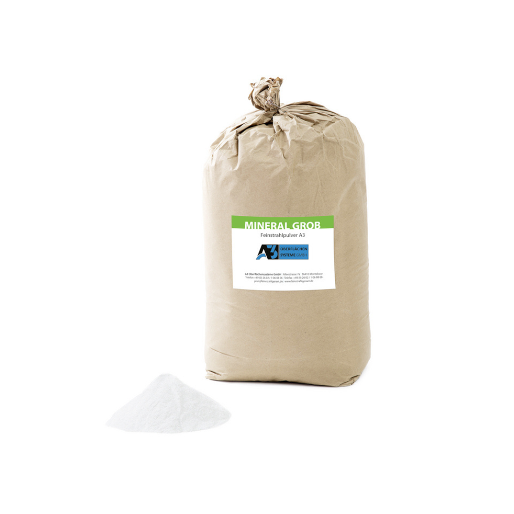 Feinstrahlpulver A3 mineral grob: für stärkere Verschmutzungen, Rost oder robuste Untergründe.