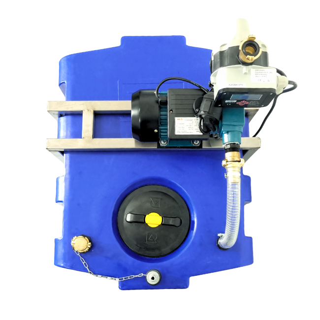 Das Komplettsystem Puffertank für Fassadenreinigung Komplettsystem mit Pumpensteuerung – 220l kombiniert einen robusten Kunststoffspeicher mit leistungsstarker Pumpentechnik, intelligenter Steuerung und umfassenden Sicherheitsfunktionen.